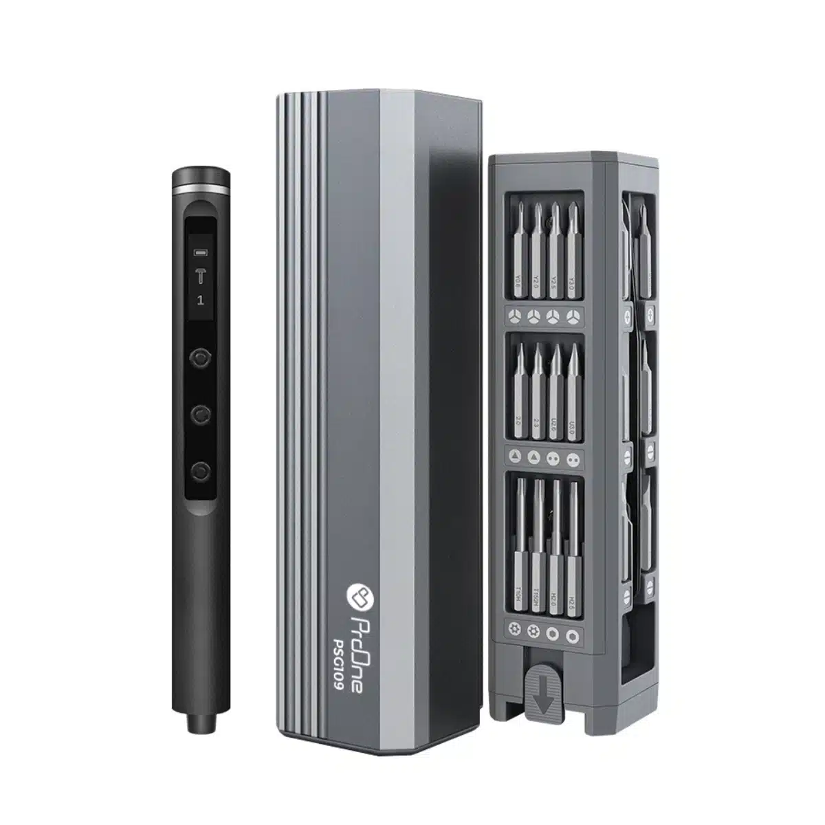 ست پیچ گوشتی PGS109 در یک جعبه آلومینیومی مستحکم و جمعوجور ارائه میشود که کیفیت ساخت آن در همان نگاه اول مشخص است. بدنهی اصلی از ترکیب آلومینیوم، پلاستیک مقاوم ABS و فولاد S2 ساخته شده تا هم دوام داشته باشد و هم در دست گرفتنش حس حرفهای بودن را منتقل کند. صفحهنمایش OLED روی دسته، امکان تنظیم ۵ سرعت مختلف را فراهم میکند و میزان باتری را نیز نمایش میدهد. تمام این امکانات تنها در ابعادی معادل ۱۷.۵×۴.۵ سانتیمتر و وزنی حدود ۴۱۲ گرم جمع شدهاند؛ یعنی چیزی که نهتنها قدرتمند است، بلکه واقعاً قابلحمل است.