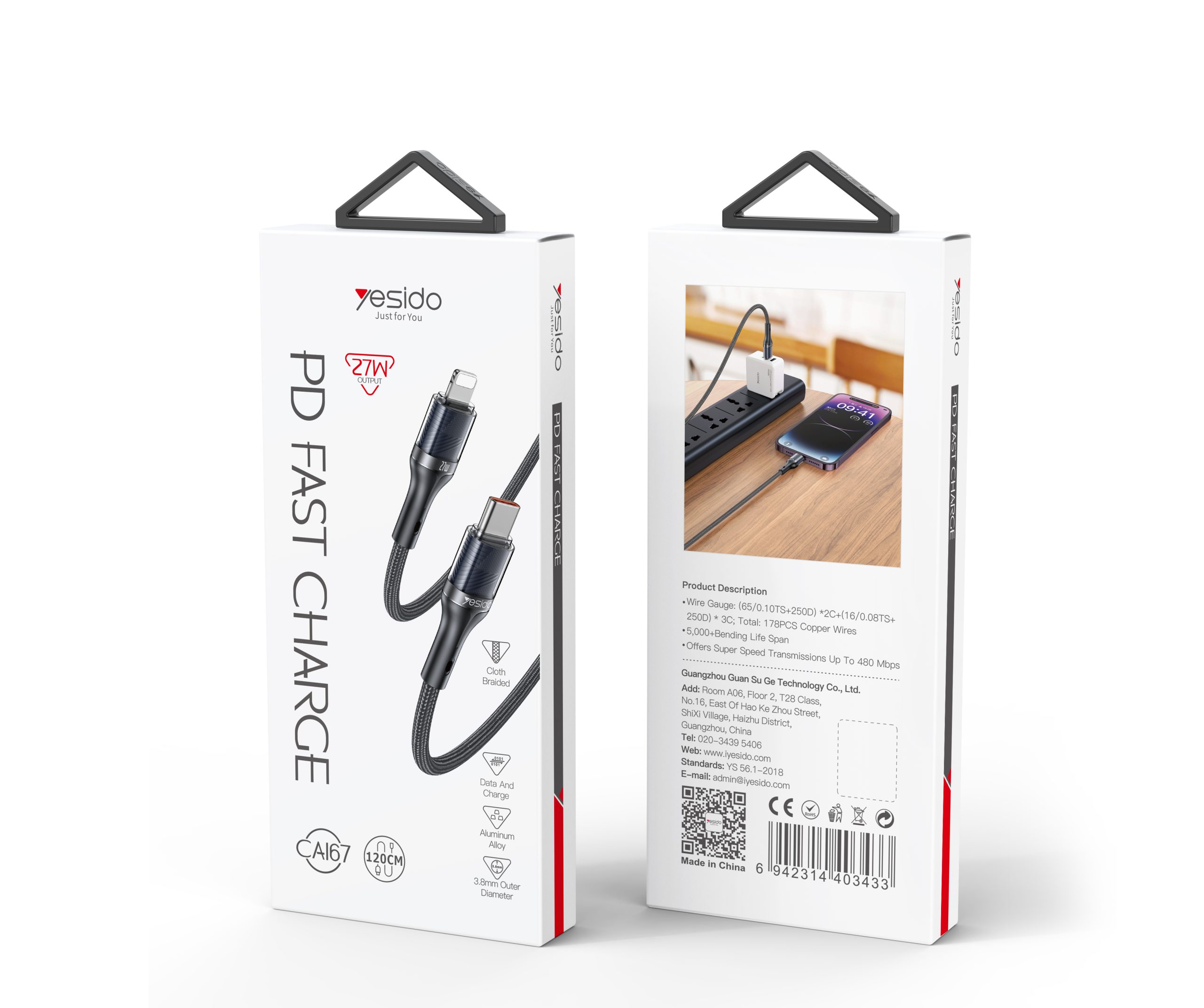 کابل تایپسی به لایتنینگ یسیدو YESIDO CA167 طول 1.2متر 27w