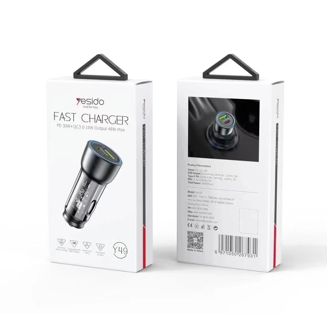 فست شارژ Y49 دارای دو پورت تایپسی با توان 30 وات و پورت USB با توان 18 وات میباشد.