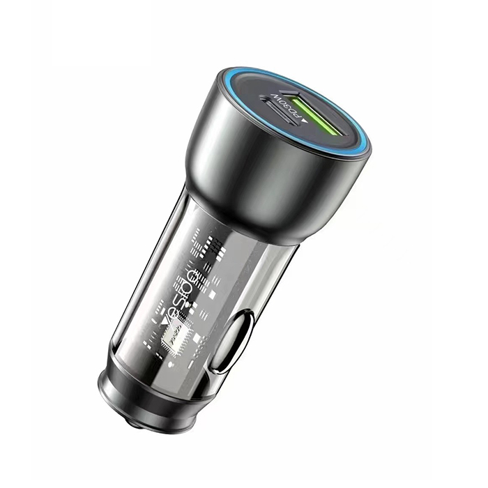 شارژر فندکی Y49 از جنس پلاستیک شفاف و آلیاژ آلمینیوم محکم و مقاوم در برابر ضربات احتمالی است.